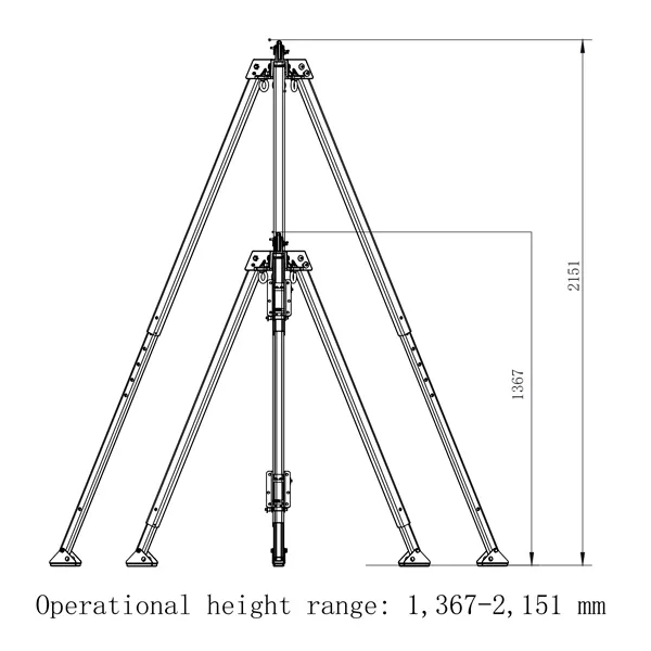 This compact and durable rescue tripod is designed for confined space entry, lifting, and rescue. Built with a corrosionresistant aluminum structure for strength and longevity, it features two-stage telescopic legs with independent adjustment and locking systems for secure setup on uneven terrain. The top-mounted single pulley reduces friction and improves vertical rescue efficiency, while the integrated winch system enables controlled lifting and lowering of personnel or equipment. Equipped with dual-action steel connectors, foldable anti-slip feet, and stabilizing chains/straps, it ensures reliable safety during operation. Supplied with a nylon carrying bag for easy transport and rapid deployment.Two configurations are available: with winch or without winch.